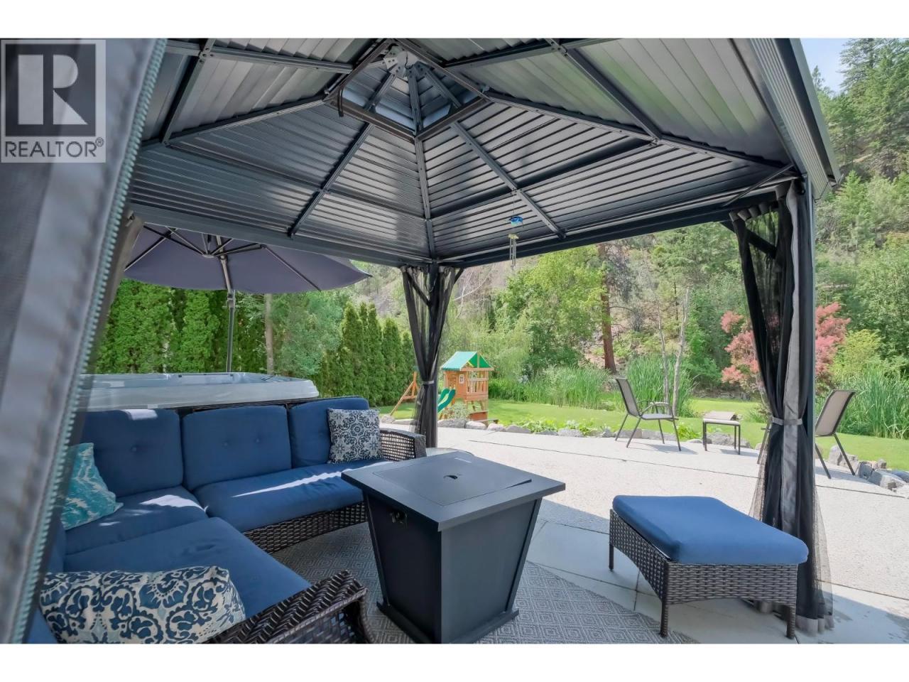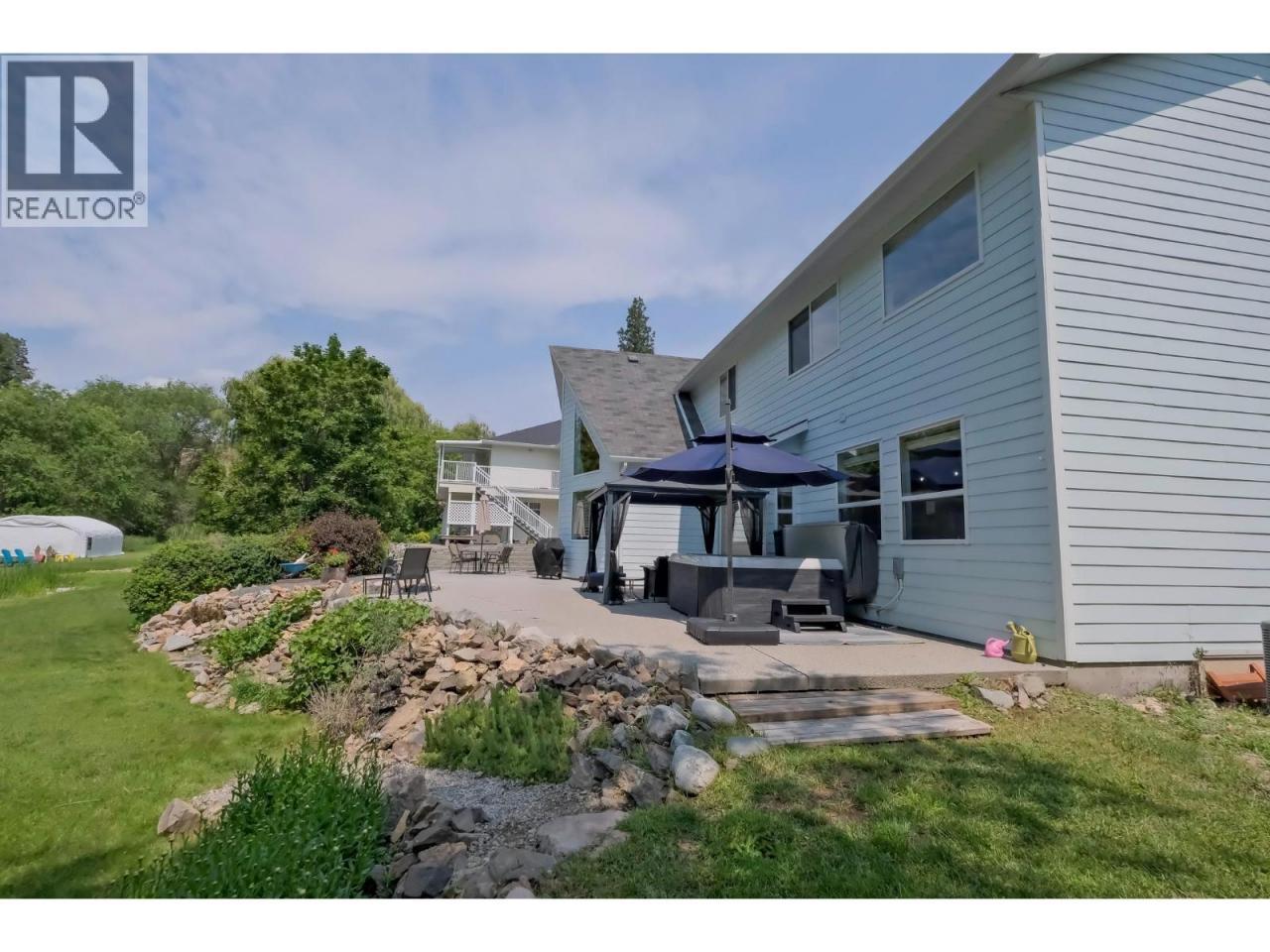 Set along the iconic Bottleneck Drive, this lovingly maintained home blends comfort and character with a location that feels truly magical. Just minutes from celebrated wineries, the scenic KVR Trail, and downtown Summerland, the property also backs directly onto the historic Kettle Valley Steam Railway, creating a picturesque setting that feels straight out of a Hallmark movie. Inside, soaring 19-foot vaulted ceilings fill the living room with natural light, while the upper level offers three inviting bedrooms that overlook the bright and airy space below. The heart of the home is its open-concept kitchen, dining, and family rooms, where large windows frame the outdoors and a walk-out door provides easy access to the backyard. It’s a space designed for connection—whether you’re preparing meals, gathering around the table, or enjoying quiet evenings together. The main level also offers wonderful flexibility with a private office or guest area, complete with its own entrance and a built-in wall bed—an ideal retreat for visiting friends or a quiet place to work. Outdoors, the backyard feels like a private sanctuary. A gentle creek winds through beautifully landscaped gardens with natural rock accents, while a spacious patio invites you to relax in the hot tub, host summer barbecues, or simply unwind in the peaceful surroundings. Thoughtful updates, including modern HVAC, newer appliances, newer flooring, and fresh paint, mean the home is as practical as it is welcoming. (id:6769)