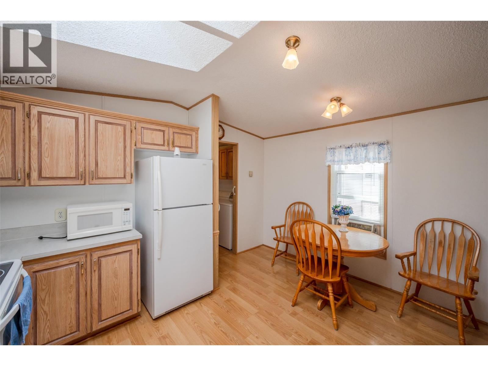 This home well-appointed 2 bedroom, 2 bathroom home offers a great view on a corner lot and is priced to sell. Features of this home include a bright kitchen with skylights, vaulted ceilings, a bedroom at each end of the home with a private ensuite attached to the primary bedroom, and an attached storage area. Outside you can enjoy the large covered deck with views of Peach Cliff or putter in the 8x8 shed, perfect for your projects. You even have your own peach tree! This unit is located in Peach Cliff MHP, which is a 55+ park that does allow pets upon approval. Book your viewing today. (id:6769)