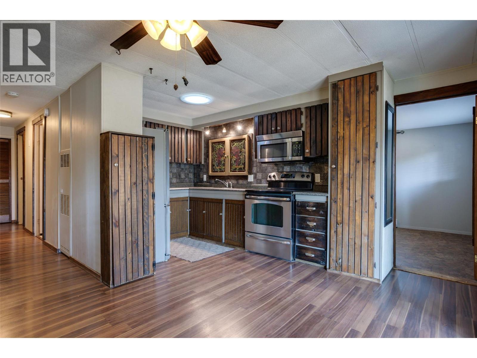 Excellent Value with Lake Access Nearby. Discover the potential in this 3-bedroom, 2-bath manufactured home in desirable Green Bay Manufactured Home Park. This is a court-ordered sale and is priced well below assessed value, offering an exceptional opportunity for someone ready to invest a little time and vision. Vacant for a period, the home and yard will benefit from some updating and care. With improvements, it can easily be transformed into a welcoming home with generous outdoor space and plenty of storage. Enjoy the lifestyle of being right across the street from a park with access to Okanagan Lake, perfect for walks, paddling, or simply soaking in the views. The pad rental is on freehold land and follows the protections and rights of the BC Manufactured Home Tenancy Act. One pet is permitted (up to 16”, with some breed restrictions). Bring your ideas and make this property shine—opportunities like this, at this price point, are rare. (id:6769)