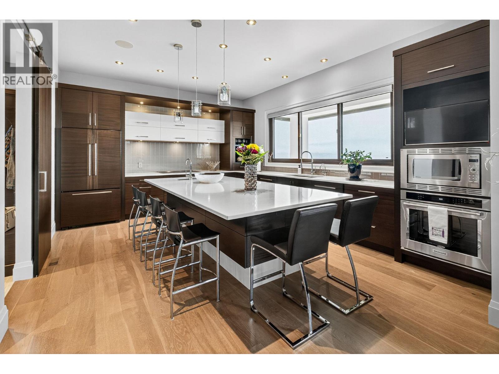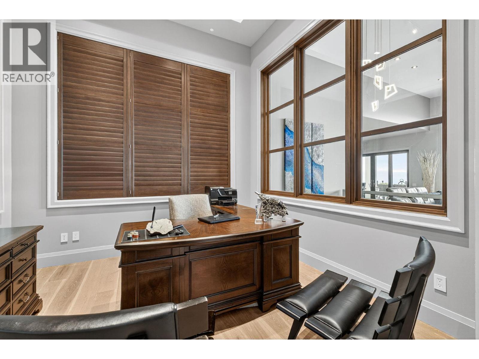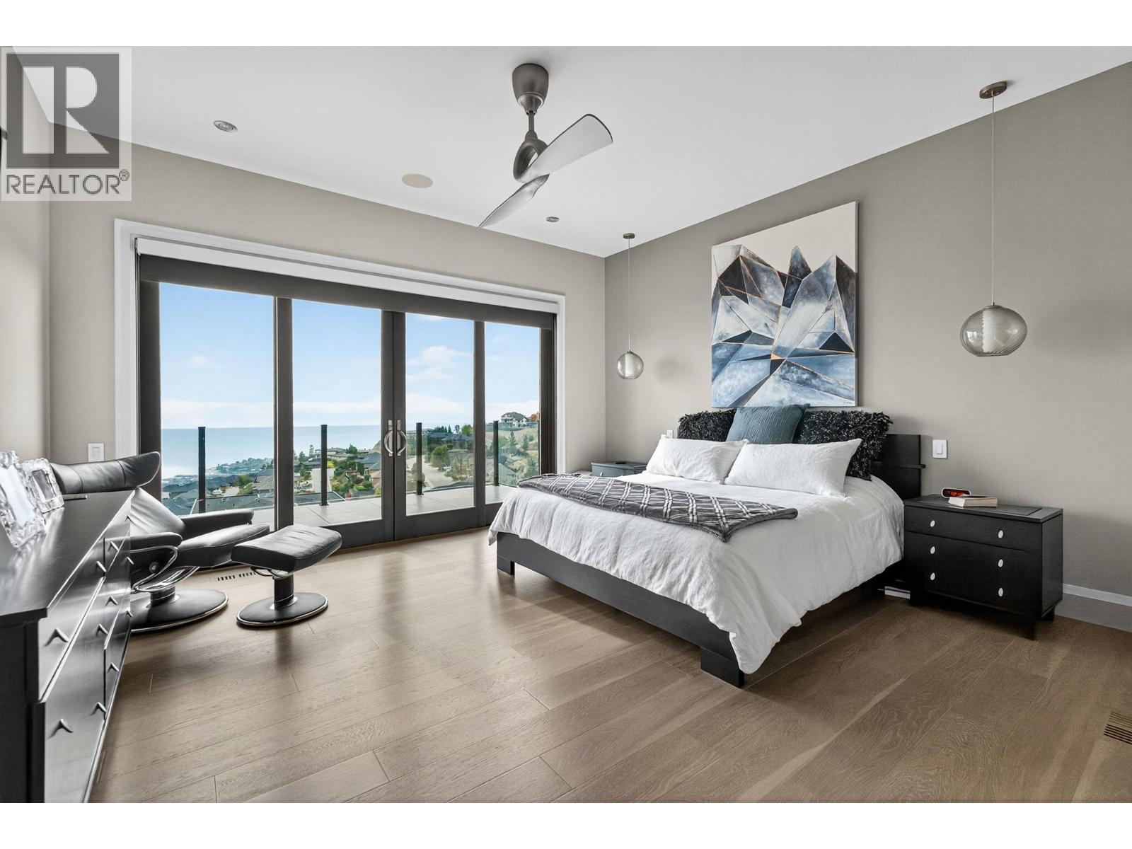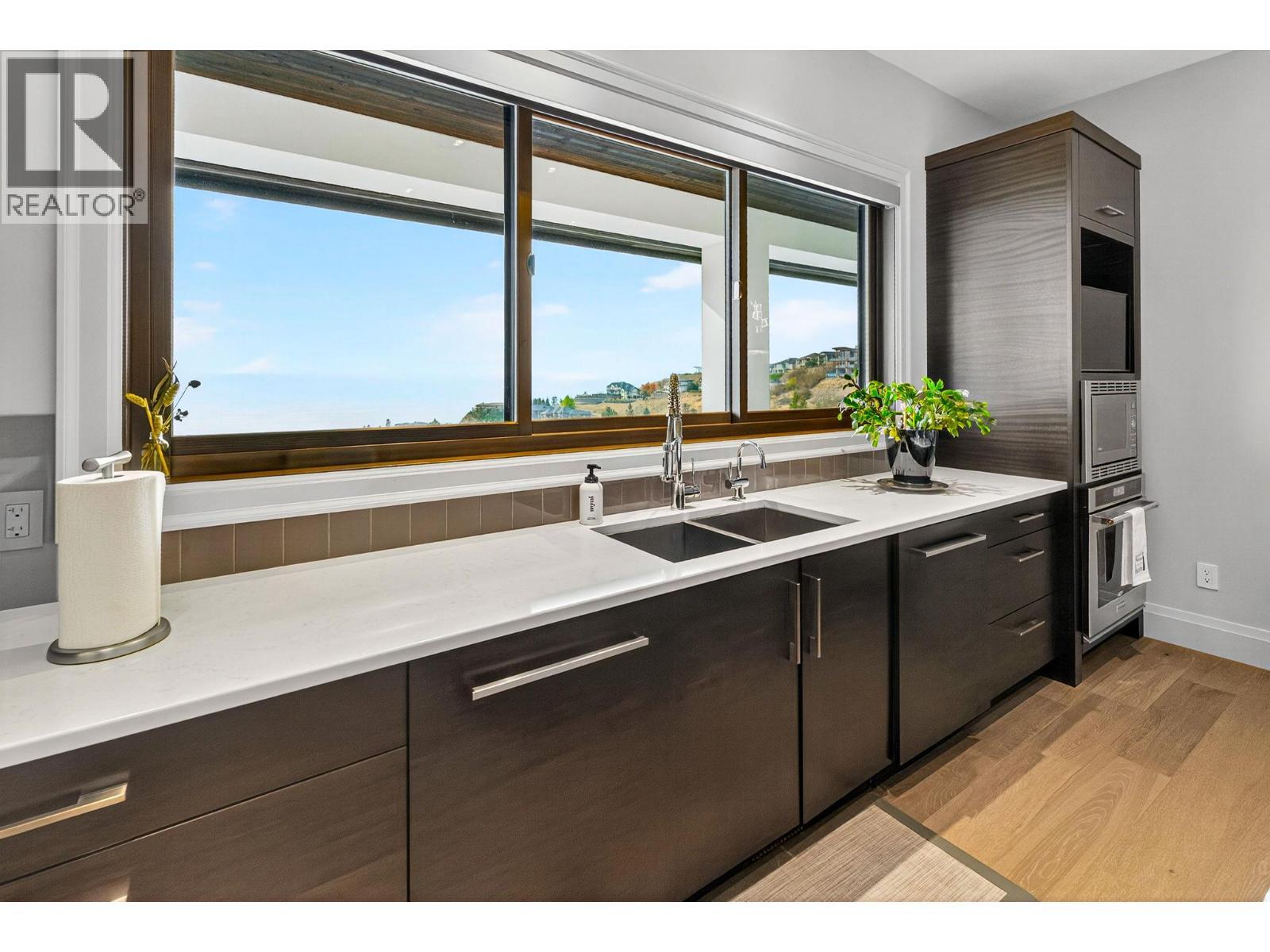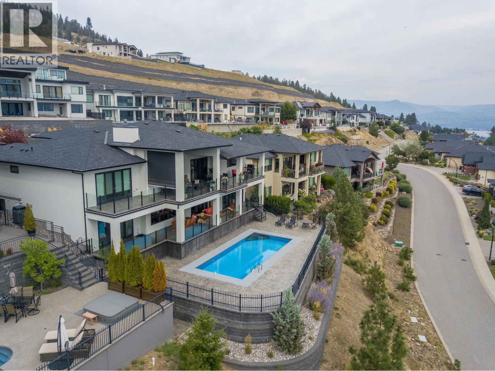 Welcome to an unparalleled luxury residence where custom design meets timeless elegance. This 5,172 sq ft architectural gem is a testament to superior craftsmanship, offering captivating lake, vineyard, and mountain views—a backdrop as exquisite as the home itself. Step inside to discover an expansive primary bedroom, highlighting a luxurious ensuite with steam shower, soaker tub, heated floors and interim lighting. The walk-in closet, complete with its own washer and dryer, adds convenience to luxury living. The modern kitchen boasts top-of-the-line appliances, an instant hot water tap, and a large quartz island, complete with a prep sink—perfect for gatherings with family and friends. A welcome addition is a Butler’s pantry complete with fridge and stove. Adjacent to the dining room, there’s a beverage centre with wine fridge, sink, and built-in shelving/storage with elegant sliding wood doors. Throughout the home, you’ll find soaring ceilings, wide plank flooring, modern lighting along with stainless steel/glass railings. The executive office can overlook the garage if need be, catering to car enthusiasts. It highlights a triple car garage with an epoxy floor, but for discretion and practicality the windows have customized wooden louvered blinds. The walk-out basement features three additional bedrooms, including a Jack and Jill bathroom—ideal for teenagers seeking their own space. Unwind in the saltwater heated pool or relax on the large deck and patio, overlooking a maintenance-free, fully fenced yard. This immaculate home features a backup generator, electric blinds, built-in audio system, kids’ play loft, theatre room, a second laundry room in the basement, and newly sealed driveway, deck and patio. Plus Rubroc accent added around the pool deck, an artificial front lawn, and a “no-grass” backyard! This Lakeview Heights masterpiece truly looks and feels brand new—crafted for those who appreciate luxury, elegance, and flawless attention to detail. (id:6769)