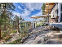 All but hidden from view is 2843 Arawana Place, a work of art designed by renowned Architect Florian Maurer. Designed as his personal residence, this home epitomizes his desire for the calm and serene as he believed the world was loud enough without him adding to it. Winning the Governor General's medal in 2006 for his design, Maurer connects the detached inside spaces by way of exterior flow for effortless functionality, with a focus on the magical courtyard space. In this home you find, rather than an abundance of square footage, a spaciousness bound with total privacy, achieving his goal of controlling the view so as not to have one’s enjoyment and privacy governed by neighbours. Entering the gates, you pass by the upper level serving as a home office or guest suite, with an adjacent garage and storage area. From there, venture into a secret garden with entertaining spaces, corners for quiet retreat, and the beauty of dappled sun through the leaves of the trees. The second detached space serves as the primary bedroom, while the main space consists of the kitchen, large pantry, living room, and guest bedroom. A large wraparound deck affords gorgeous views through the trees to the lake and mountains where the sounds of nature settle over you. Completing the home is the gallery space, added by the current owners and set upon slim steel posts. Clad in stainless steel reflecting the sky and forest, this structure disappears as it floats above the bedrock, gently fitting into the surrounding greenspace. Book your private viewing of this one-of-a-kind home today! All msmts approx. (id:6769)