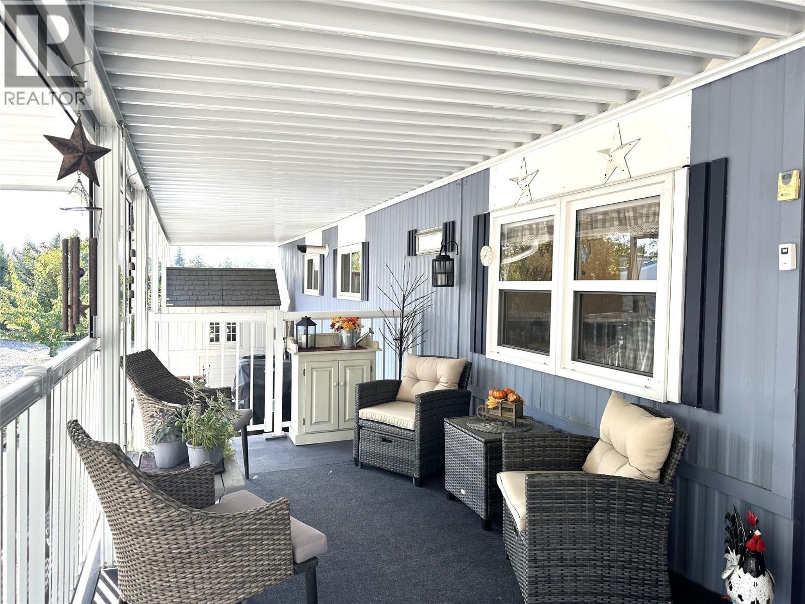 Move-In Ready 1-Bedroom + DEN in a 55+ Community – Enjoy the Okanagan Lifestyle! Don’t miss this well-maintained home located in a quiet and friendly 55+ community. This home is truly move-in ready and features a large, covered patio and a low-maintenance yard—perfect for enjoying the beautiful Okanagan sunshine. Step inside to a bright, open-concept layout with a spacious living room surrounded by windows that let in plenty of natural light. The U-shaped kitchen offers great functionality and opens seamlessly to the main living space, creating an inviting atmosphere for everyday living or entertaining. Recent updates include a newer furnace & air conditioner, hot water on demand system ,water softener, updated windows & flooring, extended awning and deck, newer storage shed, landscaping, refrigerator & stove, backsplash and more! This home offers exceptional value and comfort in one of the most desirable regions in the province. Whether you're looking to downsize or retire in a peaceful setting, this is the total package. Some restrictions do apply: No dogs allowed, 1 cat allowed upon approval, 55+, no rentals. Meas approx only - buyer to verify. Contact listing agent for the complete update list! (id:6769)