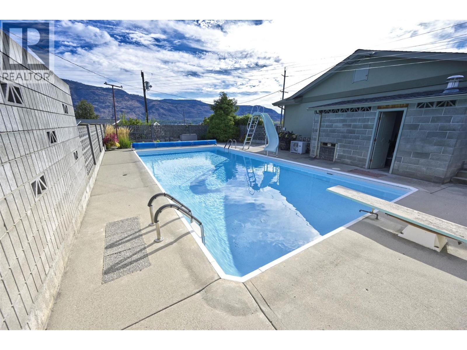 Charming LAKEVIEW HOME with great SWIMMING POOL. Custom-built and set on a prime corner lot, this home offers sweeping lake views and a highly convenient location just minutes to downtown, schools, beaches, and everyday amenities. The property features an impressive 18’ x 36’ SWIMMING POOL complete with a slide, with a new pool liner and lots of privacy. The main level offers 1,817 sq. ft. of living space, showcasing lake views from both the living and family rooms, along with three bedrooms and two bathrooms. The lower level provides an additional 1,360 sq. ft., featuring a spacious recreation room with wet bar, two more bedrooms, two bathrooms, and a dedicated sauna room—ideal for entertaining or extended family living. With central air conditioning, underground irrigation, ample parking, and solid bones throughout, this home presents an excellent opportunity for value-adding renovations. Quick possession is available, making it an ideal option for buyers ready to secure a lakeview lifestyle in Osoyoos. (id:6769)