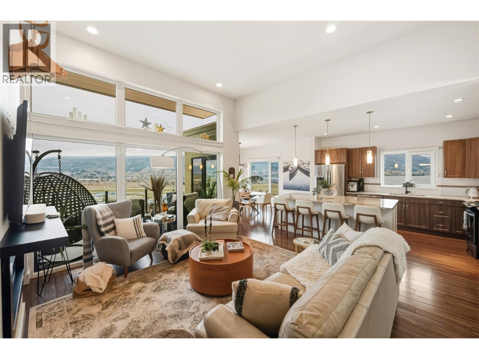 ***OPEN HOUSE - SATURDAY, JANAURY 24th - 10:00AM to 11:30AM*** CONTINGENT. Oh My! The Views! Enjoy the panoramic Skaha Lake and City of Penticton views from this gorgeous modern contemporary home with a stunning location within Skaha Hills. This 4 bedroom, 3 bathroom home plus den is sure to please the entire family. The Main Floor features an open concept kitchen, living and dining area, spacious primary room with walk in closets and a 4 pc bath with walk in shower, the second bedroom, the main 4pc bath and a den/office with a stunning view. Downstairs you'll find 2 more bedrooms, another 4pc bath, the large utility/storage room and a spacious open concept living room/rec room. The downstairs could quite easily be converted into a private suite or even an Airbnb for added income. It's the large decks that have made Skaha Hills famous and this one is spectacular. The panoramic views of the city, the lake, the mountains and the coming and goings at the airport allow for hours of sightseeing. No view day or night ever seems to be the same! These well built Greyback homes are Provincial Property Tax free and have a secure 99 year prepaid lease. Skaha Hills features resort amenities; pool and hot tub, weight room and gym, tennis and pickle ball courts, Play Winery, hiking and biking trails and our own Dog Park all for a low HOA fee of $196 a month. Consider joining the Hill and basking in all the Okanagan Lifestyle can throw your way. Book your own private showing today. (id:6769)