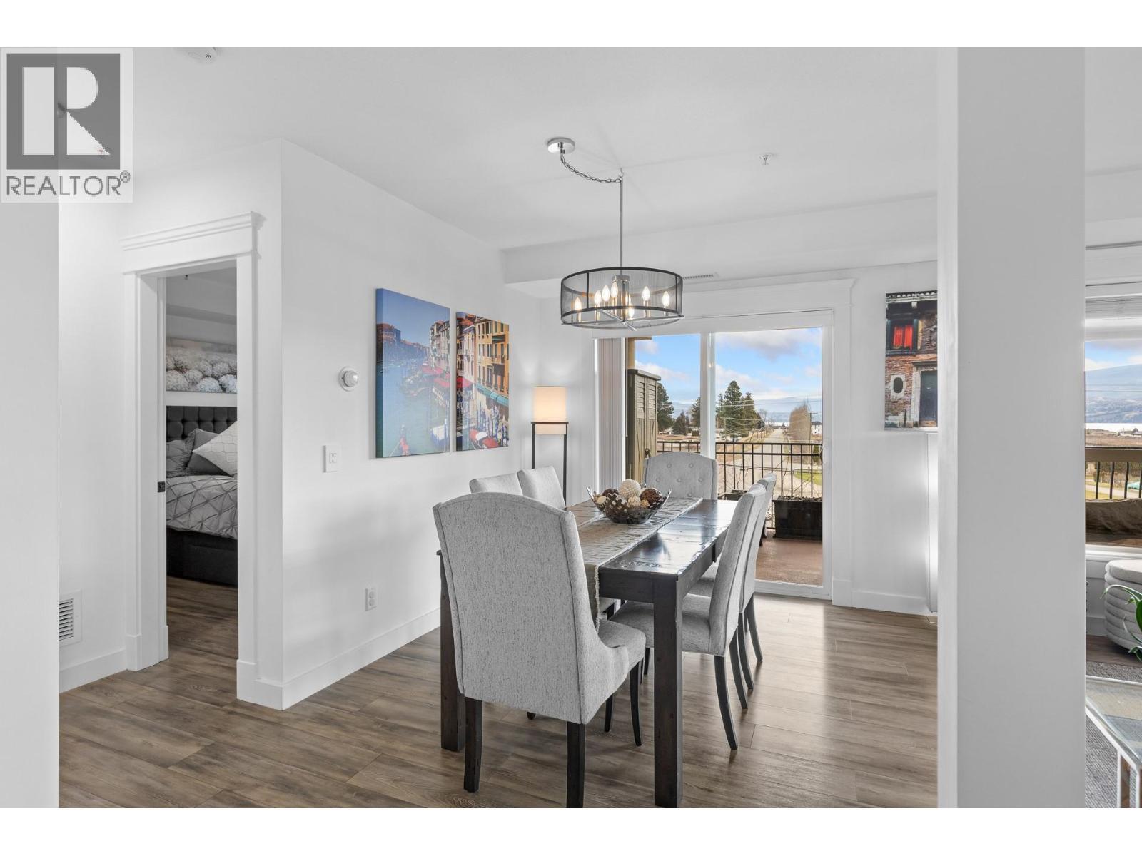 Welcome to Tuscany Villas! Gorgeous lake views and effortless resort-style living await in this poolside 2-bedroom, 2-bathroom condo offering 1,150 sq. ft. of interior living plus an incredible 480 sqft covered deck perfect for entertaining, relaxing, and taking in the scenery. This bright, open-concept plan is beautifully finished with newer flooring and a stylish kitchen featuring a large island, granite countertops and all-new stainless steel ThinQ appliances. Every detail has been thoughtfully upgraded, including new lighting throughout, new switches and dimmers, a smart thermostat, and quartz countertops with modern fixtures in both bathrooms. The bedroom sliders are enhanced with UV privacy film, allowing natural light to pour in while maintaining comfort and privacy. Enjoy breathtaking approximately 180-degree lake views through expansive windows and the peace of mind of a solid concrete and steel construction building - designed to be up to 75% quieter and built to last. Air conditioned, pristine and truly move-in ready, this home feels like new. Even better, no Property Transfer Tax applies, adding exceptional value. Tuscany Villas delivers true resort-style living with a beautiful outdoor swimming pool, hot tub - just steps to the beach, trails, wineries, restaurants and shopping. Whether as your full-time residence or the perfect home away from home, this is lakeside living at its finest. (id:6769)