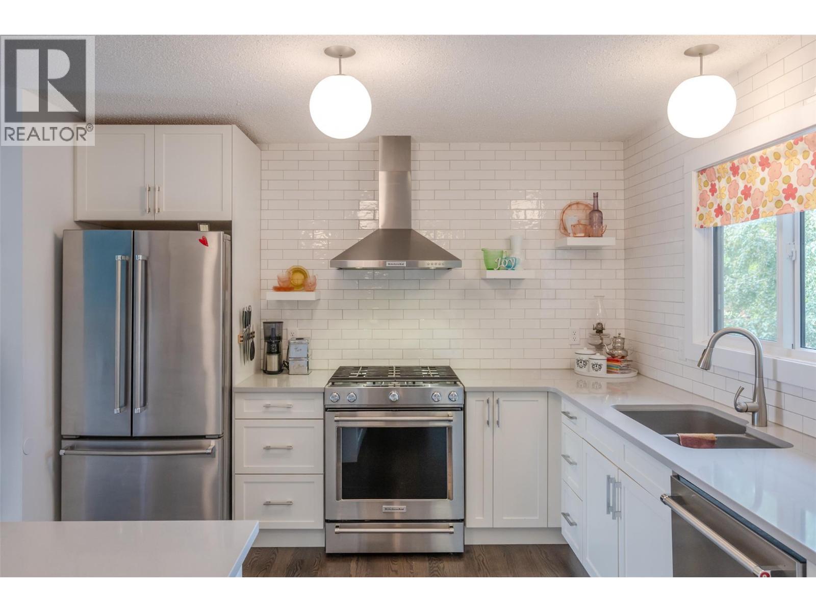 LAKE, MOUNTAIN, & PARK VIEWS! SKAHA LAKE & BEACH RIGHT ACROSS THE STREET! 4 bed, 2 FULL bath home with detached garage space in a SOUGHT AFTER location on a flat .21 acre. MANY UPGRADES: new kitchen & bathrooms, heat pump (2019), gutters (2019), hot water tank (2023), flooring, gas fireplace (2019), doors (2019), roof (2025), windows (2019), & much more! Additionally, all new landscaping with irrigation system, fencing, back deck & front porch. Main floor opens up to a spacious living/dining space with a GAS fireplace & is flooded with natural light from the large windows. Renovated in 2019, the modern kitchen is equipped with large island & STAINLESS STEEL appliances. Upstairs, there are 3 bedrooms & a common 4 pce bathroom. Lower level includes a huge recreation room (used as a small business/gallery art studio), an additional bedroom, 3 pce bathroom, laundry, & storage space. New patio/deck space in your own private oasis with low maintenance plants & FULLY FENCED. Plus, 2 parking spaces upfront, additional parking in back laneway for RVs/trailers & a 440 sqft workshop/garage space with 100 AMP electrical panel with heater installed for winter. Great for investors with rental opportunity or make this your family home where you can grow & enjoy all the surrounding benefits for years to come. Currently zoned R4-L to make an ideal holding property being near shopping, schools, & transit. By appointment only. Measurements approximate only - buyer to verify if important. (id:6769)