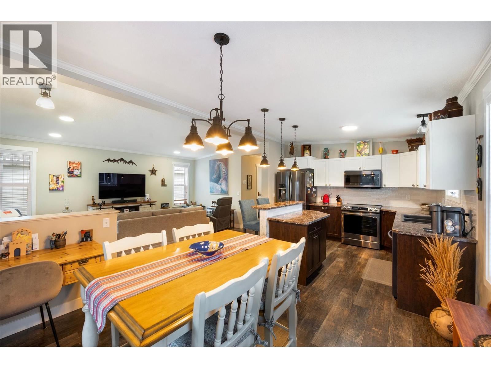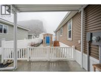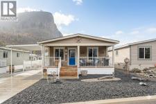Welcome to your private oasis in the prestigious Deer Park community. This modern manufactured home offers a rare combination of contemporary design and serene living, perfectly positioned just 10 minutes from downtown Oliver and 25 minutes from Penticton. Located just across the street from the creek within the complex, this home provides easy access to nature and picturesque views of the surrounding greenery and the iconic McIntyre Bluff. As you step inside, you are greeted by an open floor plan anchored by vaulted ceilings in the living room, creating an airy and inviting atmosphere. The heart of the home is the chef-inspired kitchen, featuring a functional island with bar seating—perfect for casual mornings or entertaining guests. Tucked away nearby is a cozy dining area, where corner windows frame peaceful views. The primary suite serves as a true retreat, offering a generous closet and a private 3-piece ensuite complete with a walk-in shower. Outside, the property is designed for both relaxation and practicality. Enjoy your morning coffee on the covered front deck or retreat to the fully fenced backyard, which features high-quality vinyl fencing, a storage shed, and pet-friendly turf. Parking is a breeze with a covered carport and a spacious driveway, while the community provides additional amenities including a clubhouse, river access, and RV storage. This quiet, mature-living environment offers a tranquil lifestyle with low $55/mo fees & a peaceful neighborhood feel. (id:6769)