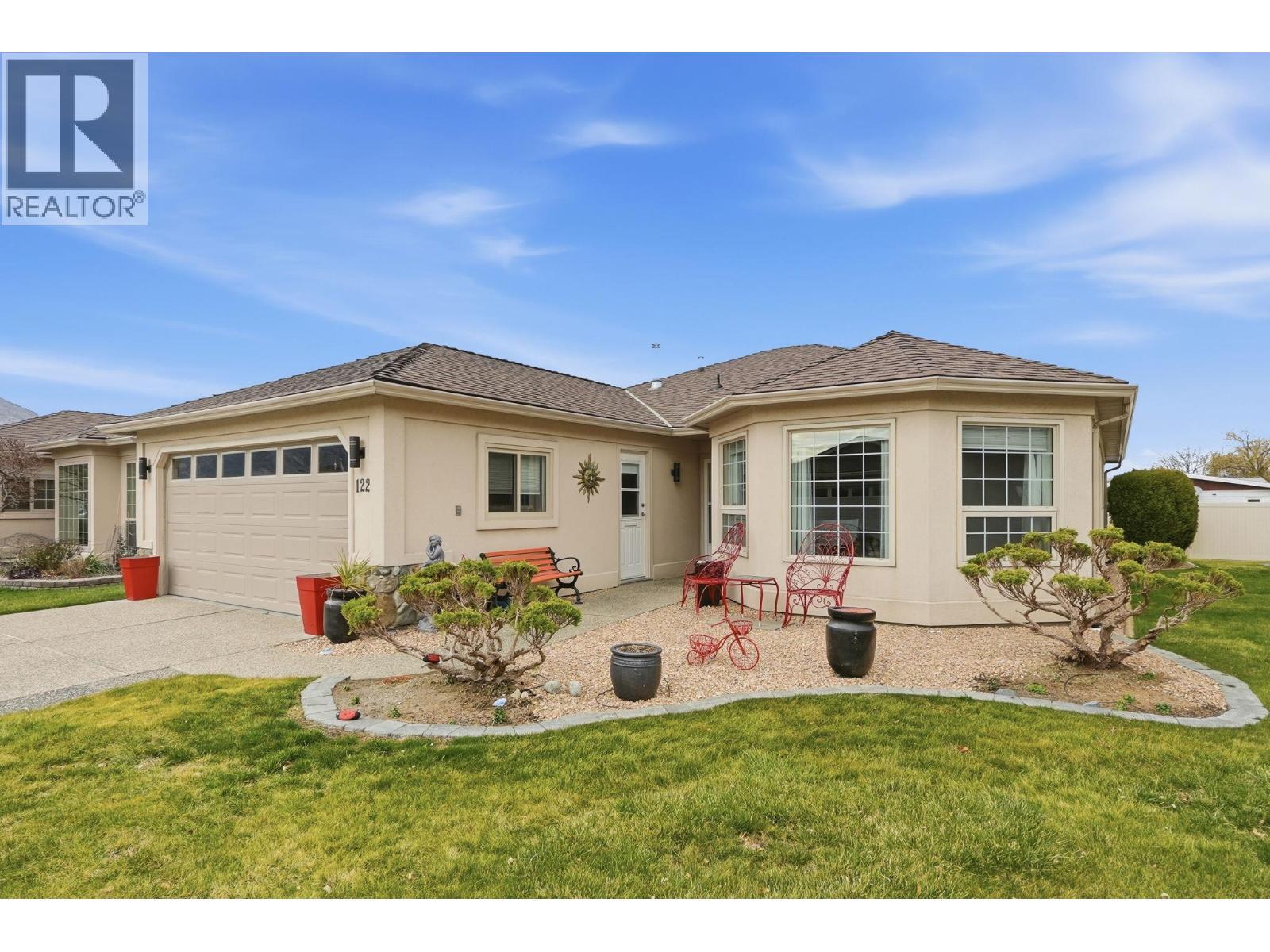 This beautifully renovated rancher offers over 1,400 sq. ft. of single-level living with 2 bedrooms, 2 bathrooms, and a cozy den with gas fireplace. Numerous upgrades include a new furnace, hot water tank, flooring, windows, paint, and a renovated main bathroom. The bright open living and dining area flows into a spacious kitchen with plenty of cupboard and counter space. Patio doors lead to a private covered patio—perfect for relaxing or entertaining. The primary bedroom features a walk-in closet and full ensuite, while the second bedroom is ideal for visiting guests. Double car garage and RV parking available. Sandbridge residents enjoy fantastic amenities including a recreation centre with pool, hot tub, billiards, library, kitchen, and social spaces with heaps of weekly events. One small pet allowed (dog or cat up to 15” at the shoulder). Book your viewing today. (id:6769)