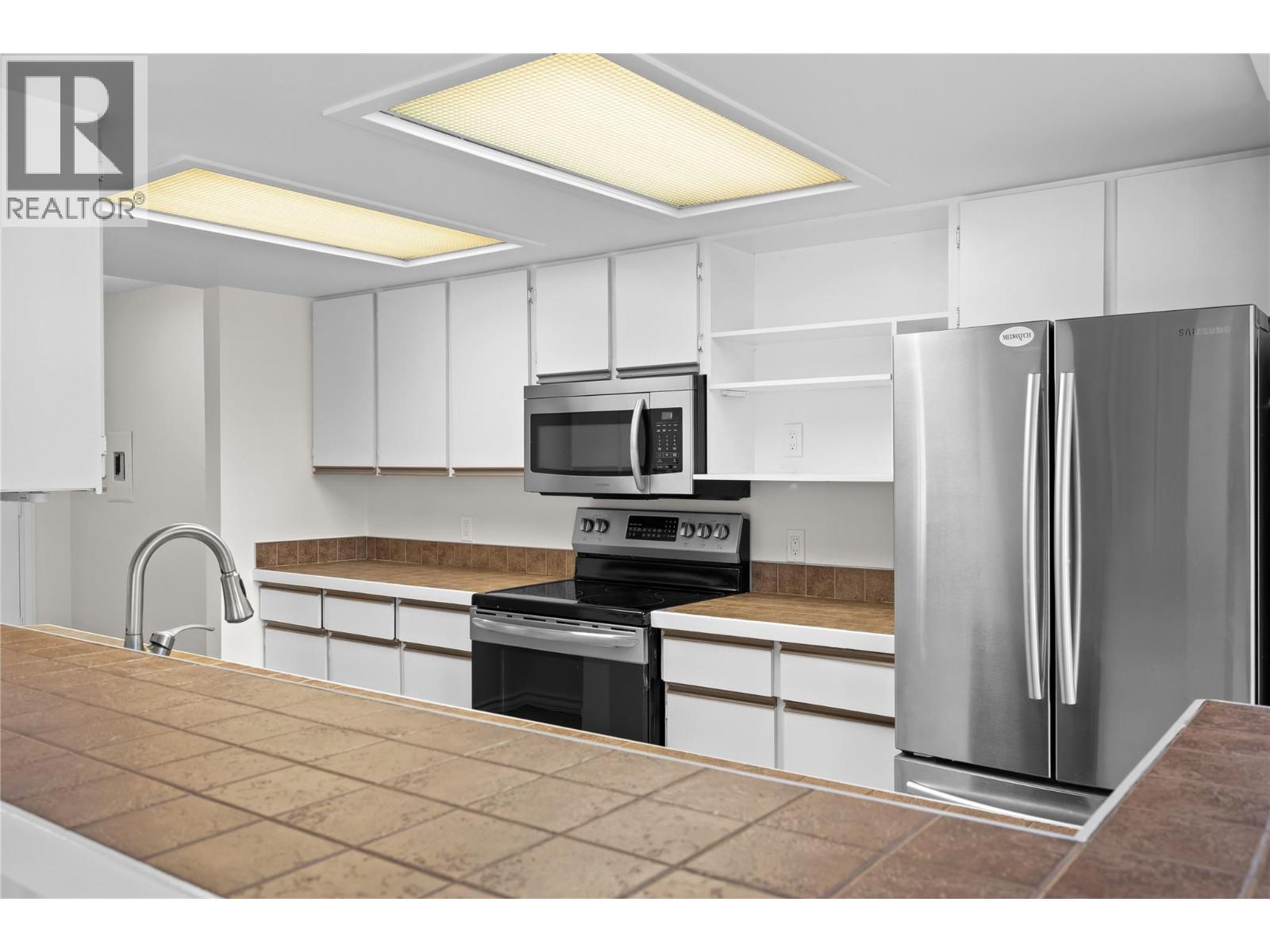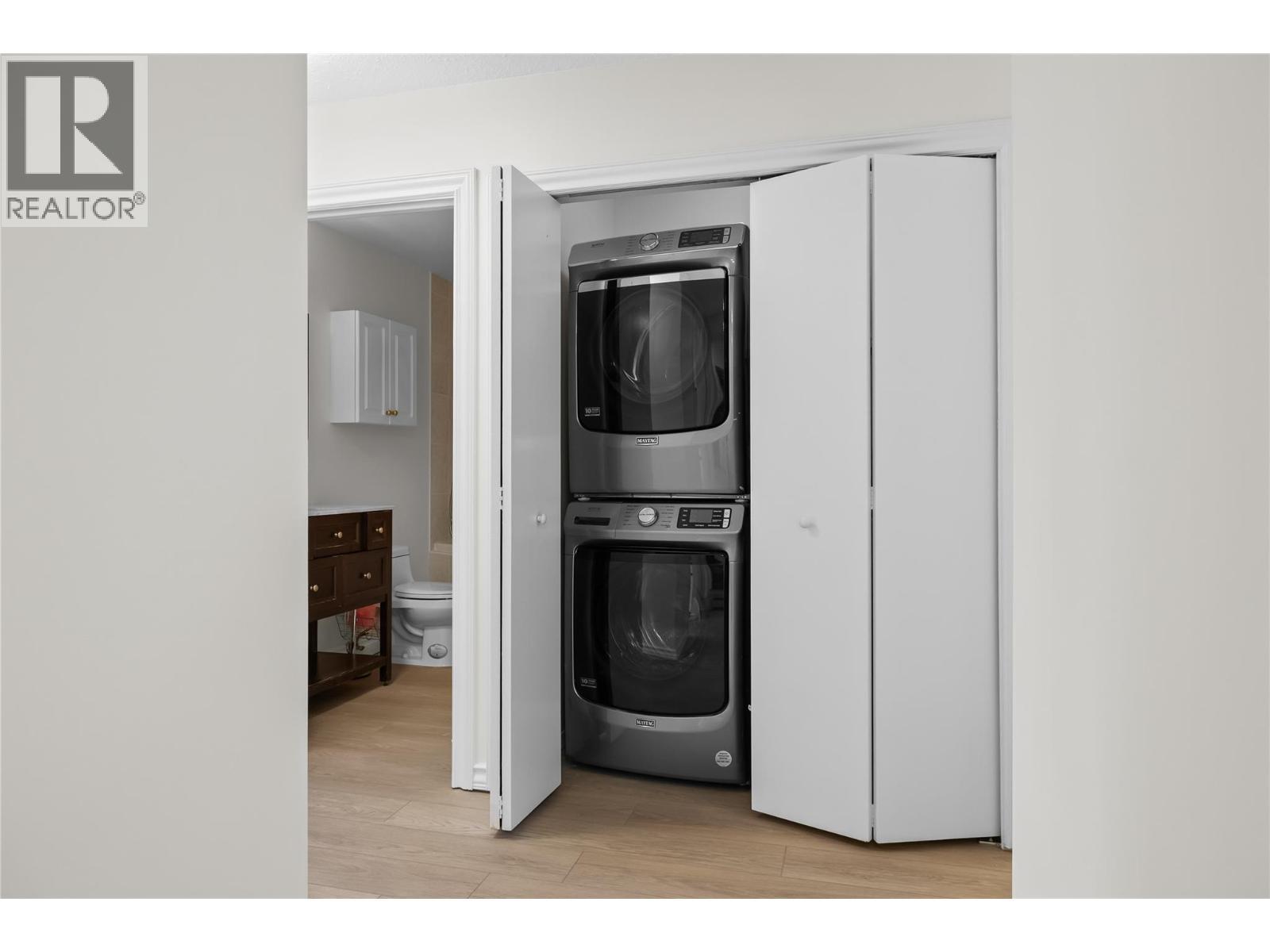 *OPEN HOUSE SAT MARCH 14TH, 12-2* Nestled in the highly coveted Beach Avenue of Peachland, ""Chateaux on the Lake"" stands as a SEMI-WATERFRONT oasis designed for those aged 55 and above, embodying an exemplary Okanagan lifestyle within a serene environment. This TOP-floor, spacious 2-bedroom/2-bathroom unit features BRAND NEW FLOORING & PAINT. The open-concept kitchen, living, and dining area boasts vaulted wood shiplap ceilings, a gas fireplace, and access to your large patio offering stunning lake views and additional storage. The kitchen is equipped with stainless steel appliances, a breakfast bar, and ample cabinetry. The primary bedroom is generously sized, featuring an ensuite, brand new carpet and a large walk-in closet. Storage and parking are no issue here with assigned parking with storage shed in front, additional private storage sheds, as well as parking for boats or RVs, and an inviting common area. Just steps away lies the renowned Beach Avenue boardwalk where an array of dining options and local shops await, including Bliss Bakery and the Blind Angler restaurant. Further convenience is found with a short drive to the local IGA grocery store in Peachland and a mere 10-minute drive to the abundant amenities of West Kelowna. Immerse yourself in the serenity and lakeside charm of Peachland living at its finest. Upgrades also include windows/patio door in 2011, new washer/dryer and brand new furnace. (id:6769)