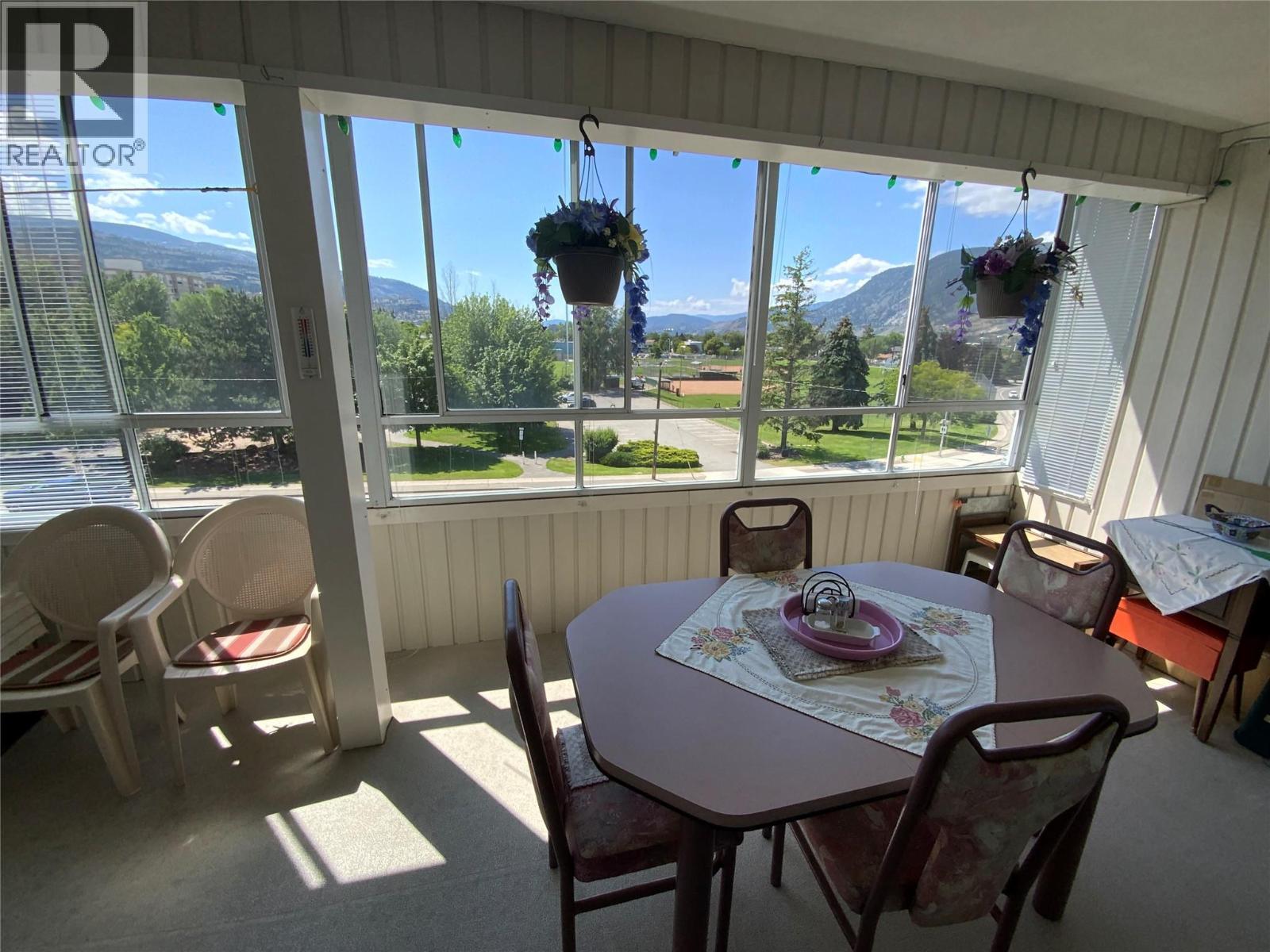 At over 1200 square-feet, this very generous sized two bedroom two bathroom condo in the heart of Penticton is now available. Only a five minute walk to Cherry Ln., Mall and close to all shopping, recreation, and entertainment. This condo boasts a beautiful 260 square-foot enclosed sunroom deck with gorgeous views of the park Mountains and valley with ample amount of natural sunlight. This is a clean and well-maintained top floor unit overlooking lions park. One secured parking and one open parking spot and included as a huge storage 9 1/2 x 11‘ foot storage locker with built in shelving. Plenty of visitor parking. Brand new elevator is being installed. All measurements approximate and to be verified by buyer if important. (id:6769)