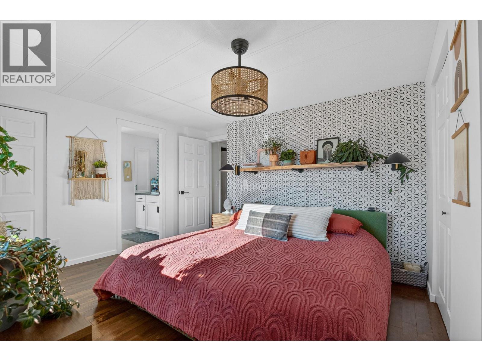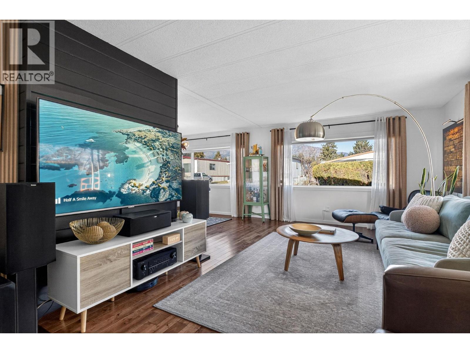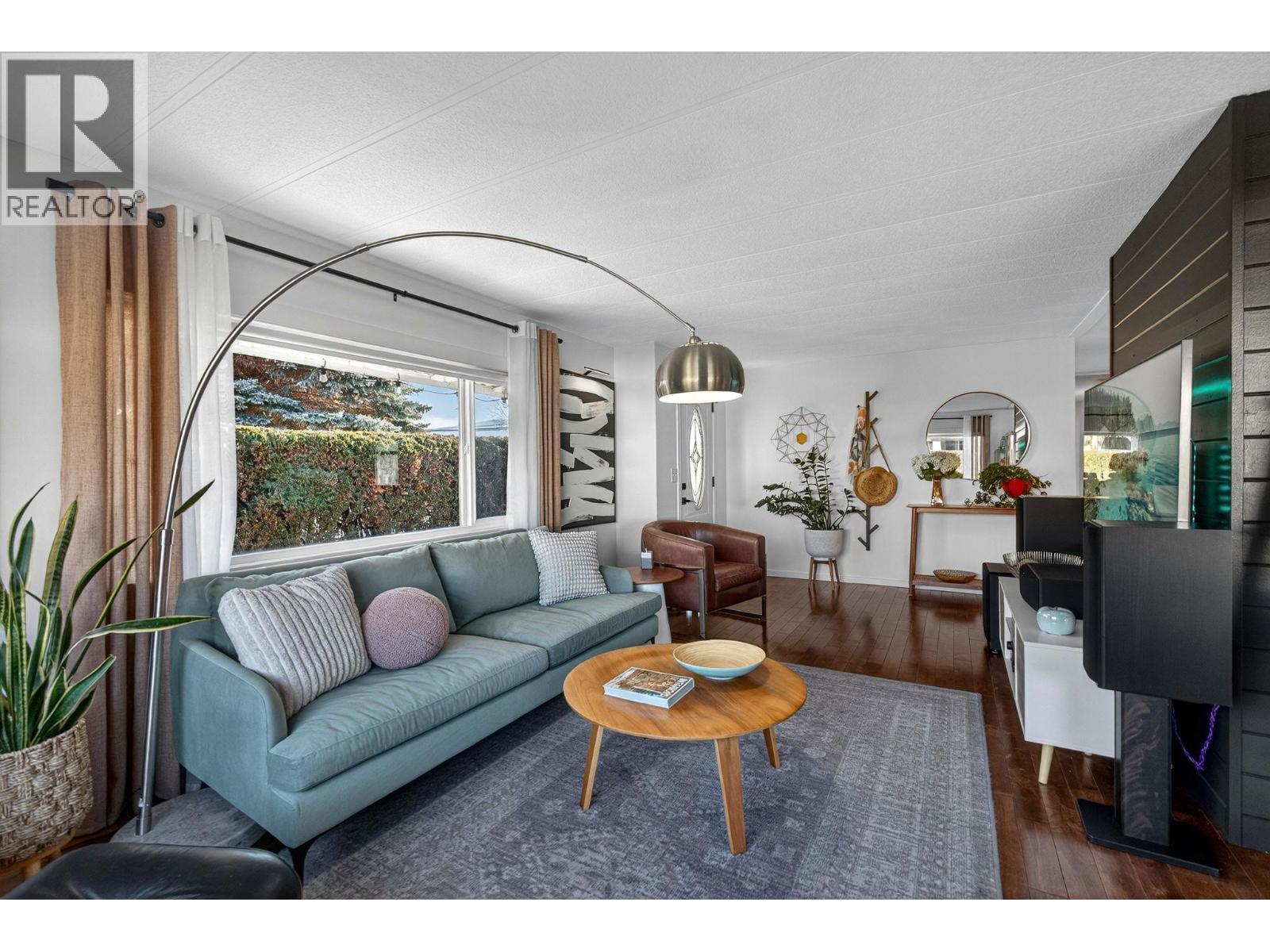 55+ Community. This one is a cream puff. Top quality renovations with a designer's touch. Nothing left to do but move in! Spacious with 3 nice sized bedrooms, 2 full bathrooms, large living room, dining room with enough space for friends and family. Beautiful yard with mature plantings, garden, partially fenced. Views of farmland, mountains and lake. Private yard for enjoying the Okanagan Sunshine and long warm seasons. Flooring, kitchen, bathrooms, painting, lights, appliances....all fairly new! Covered parking to protect the paint! and additional parking on the driveway for quests. Garden shed for the tools. No financing available. Cash buyers in this park! (id:6769)