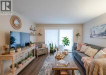 Experience the ultimate in refined, accessible living with this beautiful reimagined two-bedroom condo. This home has been meticulously transformed, boasting a bright, open-concept interior finished with fresh paint, modern trim, and modern flooring. At the center of the home, the designer kitchen shines with sleek stainless steel appliances and a functional pass-through breakfast bar, supported by an oversized pantry that makes organization effortless. Every corner reflects thoughtful upgrades, highlighted by a spa-inspired bathroom featuring a luxurious, custom-tiled walk-in shower. To ensure year-round comfort, the unit is equipped with a high-efficiency ductless heating and cooling system. The living space extends outdoors to an east facing private patio, offering a peaceful vantage point for mountain views. Located within a secure, mature community, the building is fully wheelchair accessible via elevator and serves as a vibrant social hub. Residents enjoy exclusive access to amenities including a fitness area, library, games room, and a grand common room featuring a commercial kitchen and dance floor for hosting events. With covered parking and a complex just steps from shopping, the recreation center, and scenic riverfront trails, this residence offers an unparalleled blend of convenience and sophistication. BONUS: The complex is rental friendly too! * Some photos are digitally staged * (id:6769)