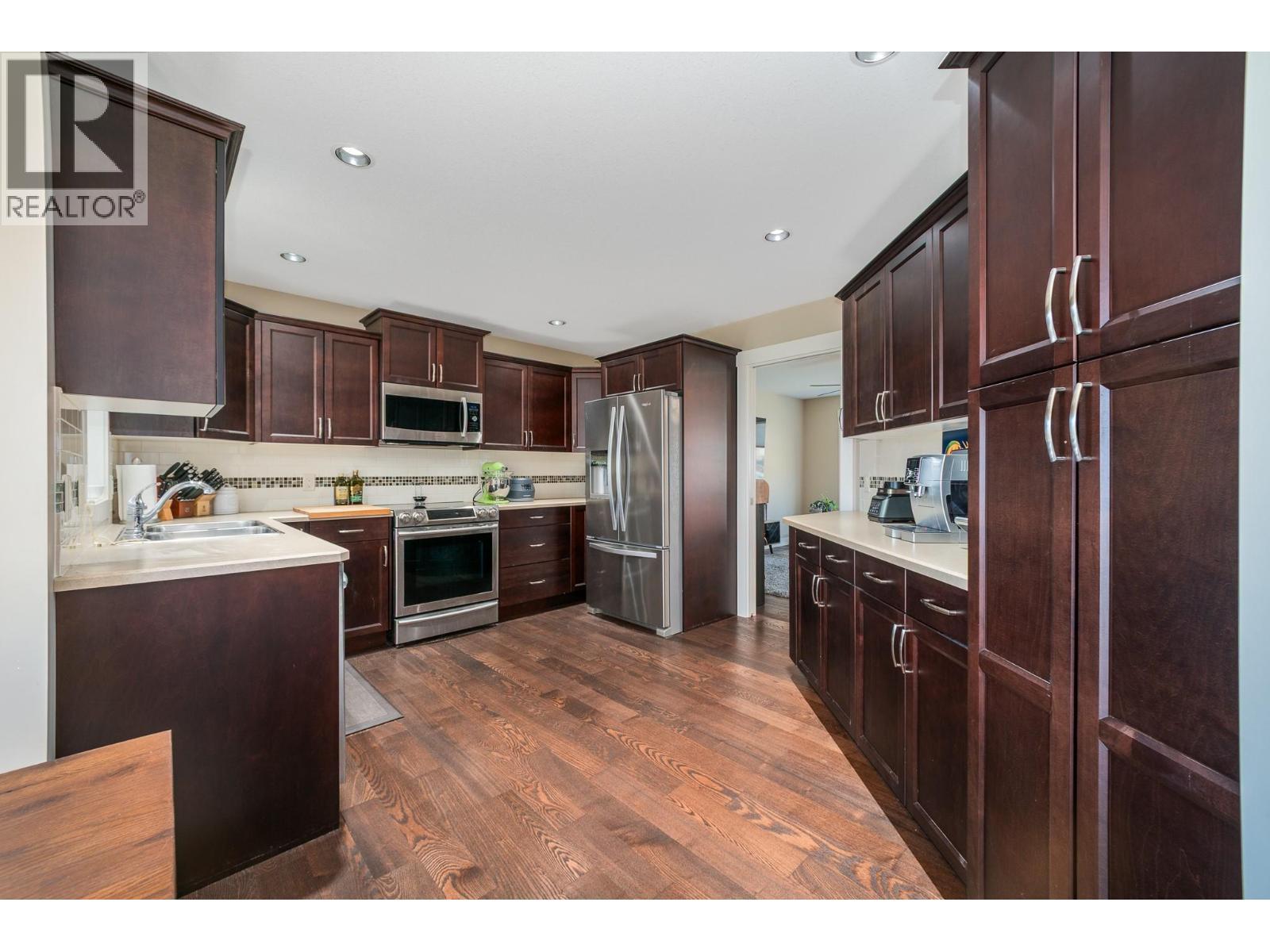 Welcome to this beautifully maintained walkout rancher in the sought-after Rose Valley community of West Kelowna. Showcasing stunning mountain views, this home comfortable and functional living space. The spacious kitchen features stainless steel appliances, a new fridge, built-in pantry, and a convenient coffee bar with lots of counter space. Step outside to the expanded covered deck with glass railing, rich wood soffits and ceiling fan—perfect for entertaining or relaxing while taking in the views. The main level primary bedroom offers a cheater ensuite with double sinks and separate shower/tub combo area with toilet. Another bedroom or home office with french doors completes this level. Downstairs, the laundry room is located right at the bottom of the stairs for ease of access. The fully finished walkout basement includes a generous rec room with a cozy fireplace and electric blackout blinds plus access to the fenced patio area. Room for family and guests with 2 additional bedrooms and a 4 piece bathroom. RV and private parking was created across from the driveway for your personal use. Located on a quiet, family-friendly street close to parks, trails, and amenities, this home offers the perfect blend of comfort, style, and lifestyle. (id:6769)