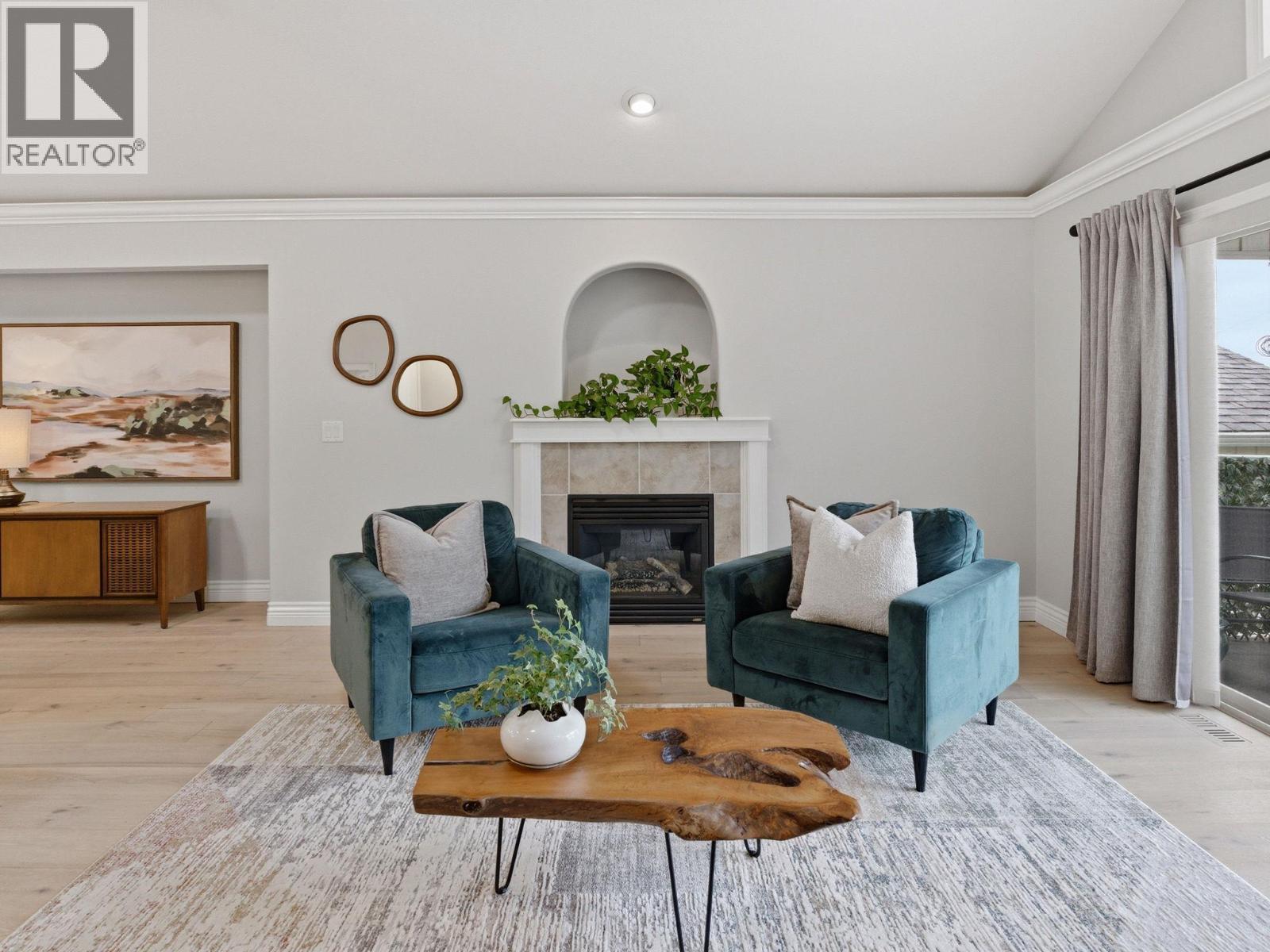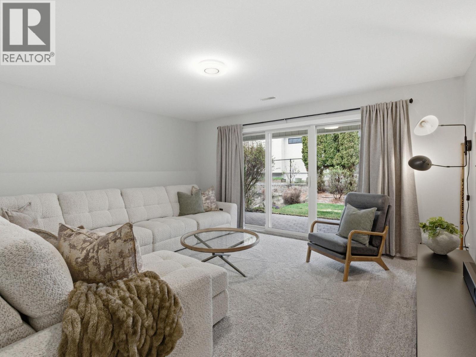 Freehold Property. Welcome to Bay Vista, one of West Kelowna’s most desirable lakeside communities, directly across from Okanagan Lake and the Gellatly Bay waterfront. This well-maintained, walkout rancher townhome offers nearly 2,500 sqft. of thoughtfully designed living space, combining the feel of a single-family home with the convenience of low-maintenance strata living. With only a shared garage wall, the home provides a high level of privacy. The main level features a bright, open-concept layout with vaulted ceilings, solar tube skylights, and large windows that fill the space with natural light. The spacious kitchen is equipped with quartz countertops, double oven, induction cooktop, flowing seamlessly into the dining & living area. The living room provides direct access to the deck with peek-a-boo lake views. The large primary bedroom is located on the main floor, offering a comfortable retreat with WIC & ensuite. The fully finished walk-out lower level has generous family room, 2 additional bedrooms, laundry room and a full bathroom. The lower patio opens to a greenspace & private outdoor area. Additional features include hardwood flooring, new carpet, central air, central vacuum, storage and a double garage with a full driveway. Amenities including a pool, hot tub, fitness room, clubhouse, all within close proximity to everyday conveniences. This is an excellent opportunity to own a spacious, move-in-ready home in a highly sought-after lakeside location. (id:6769)
