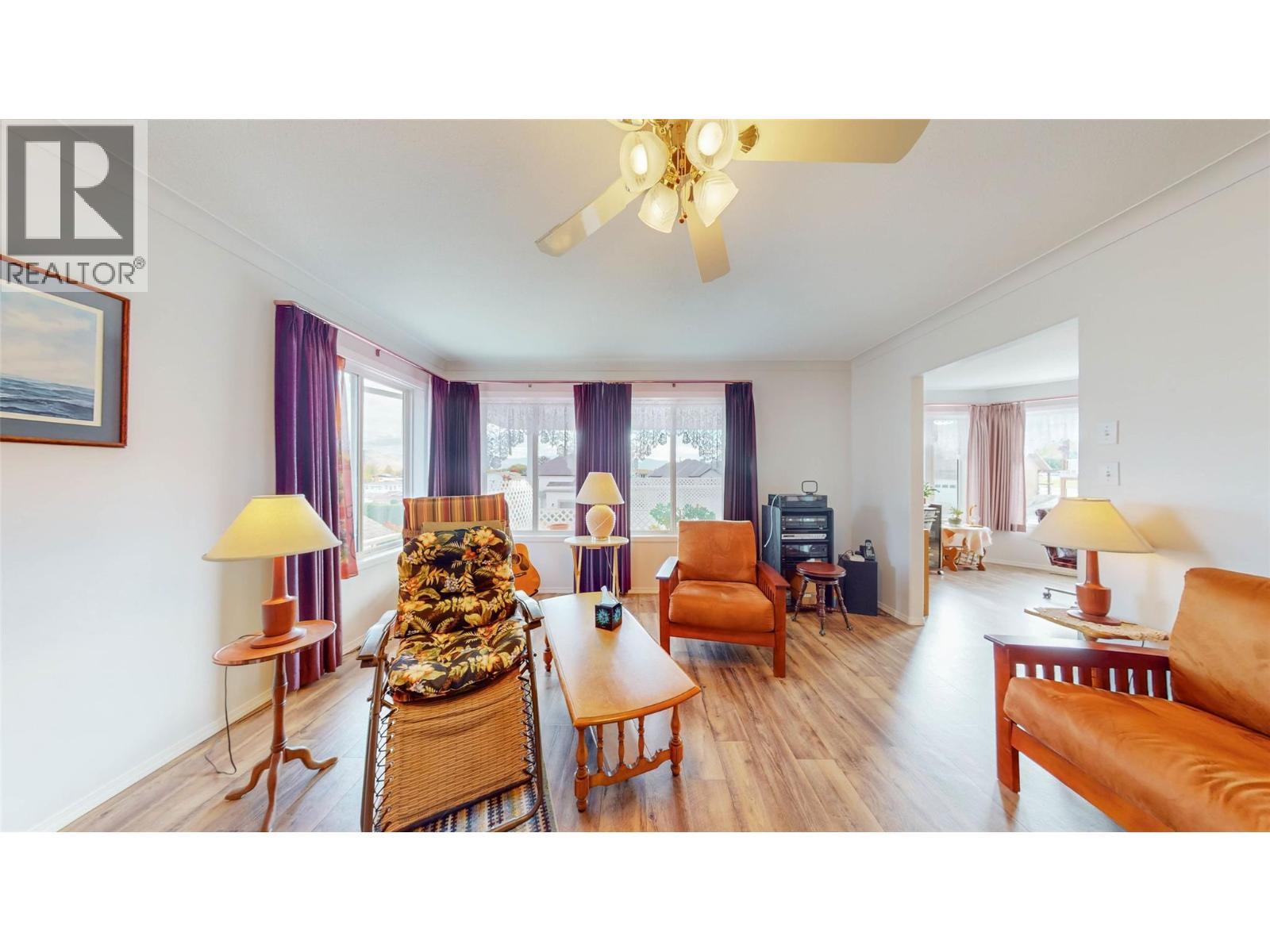 LAKEVIEW home on a CORNER LOT, with ATTACHED DOUBLE GARAGE, WORKSHOP and high-clearance RV GARAGE. Ideal for your RV, boat, or oversized truck. Walk in on the main level to a welcoming living room with a cozy fireplace, a separate dining area, and a bright, functional kitchen. Two bedrooms and two full bathrooms are located on the main floor, including a primary suite with a 3-piece ensuite and walk-in closet. Step outside onto the VIEW DECK and take in the view or enjoy the second covered deck conveniently located off the laundry room. Downstairs, you’ll find a spacious 2-BEDROOM IN-LAW SUITE with its own private entrance, perfect for extended family or guests. Equipped with a newer furnace and central air conditioning and there is plenty of extra storage. This Xericaped property is low maintenance, and it's on a no-through street. Just minutes from shopping, dining, and Osoyoos Lake! (id:6769)