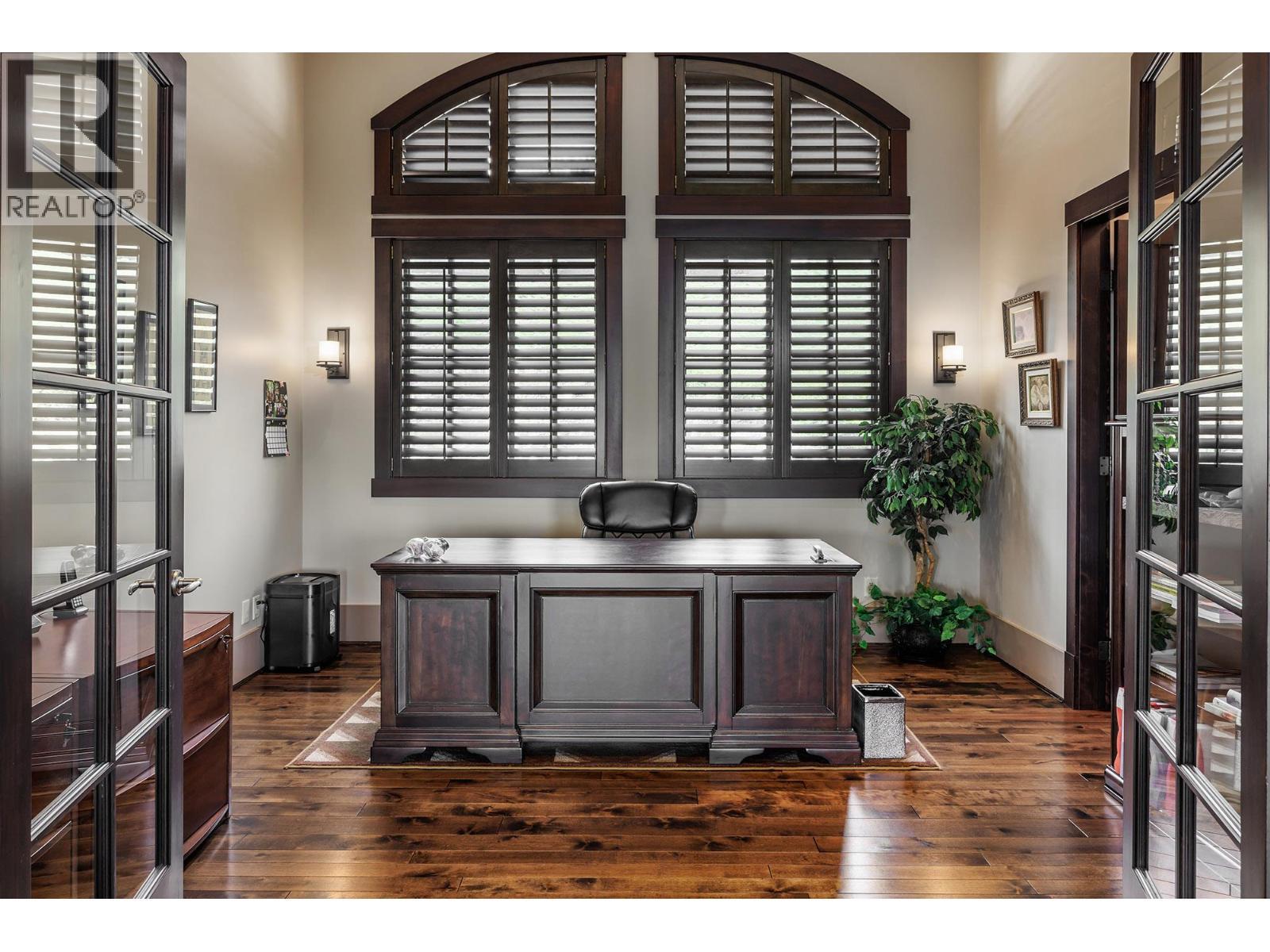 Tucked behind a gated entry in exclusive Vineyard Estates, this custom-built residence offers a rare blend of privacy, craftsmanship, and sweeping Okanagan Lake views—shared by just four homes on the street. Designed for both everyday living and exceptional entertaining, the main level features expansive open-concept living with a great room, dining area, gourmet kitchen, walk-in pantry, and a luxurious primary suite. Rich hardwood floors, a striking rock fireplace, and oversized windows frame the lake beyond. The chef’s kitchen is appointed with granite countertops and professional-grade appliances, flowing seamlessly to a covered view patio. The primary retreat includes its own fireplace, spa-inspired ensuite, and walk-in closet, plus a dedicated main floor office. The lower level is an entertainer’s dream with a full wet bar, theatre room, wine cellar, and space for billiards, along with three additional bedrooms. Outdoors, enjoy a private oasis with a saltwater pool, hot tub, and beautifully landscaped grounds. Smart home integration, Sonos audio throughout, Control4 automation, heated triple garage, and high-end mechanical systems complete this offering—just minutes to wineries, beaches, and all West Kelowna amenities. (id:6769)