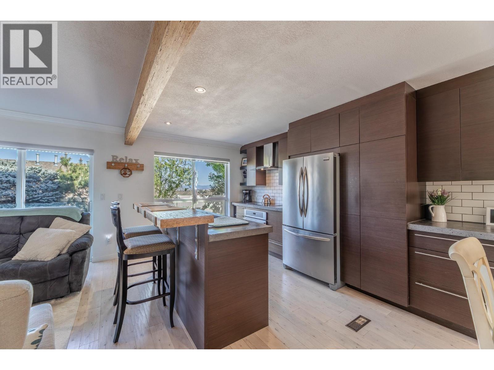 A rare opportunity in Skaha Benches to own a completely renovated 3 bedroom, 3 bathroom end uint townhome. Updates include an open concept designer kitchen, stainless steel appliances and new bathrooms fixtures and lighting. Beautiful lake views from the primary bedroom that features a bay window, 3 piece ensuite and double wide closet. Wonderfully private, fenced yard area and 2 entertainment patios, a single car garage, crawl space for storage and a well run strata complex with lower strata fees of $310 per month. All ages welcome and pets on approval. Complex offers a fantastic club house with fitness room and outdoor entertainment area and is situated a short walk to Skaha Lake! (id:6769)