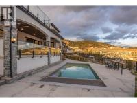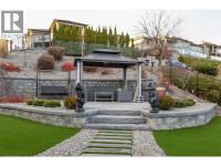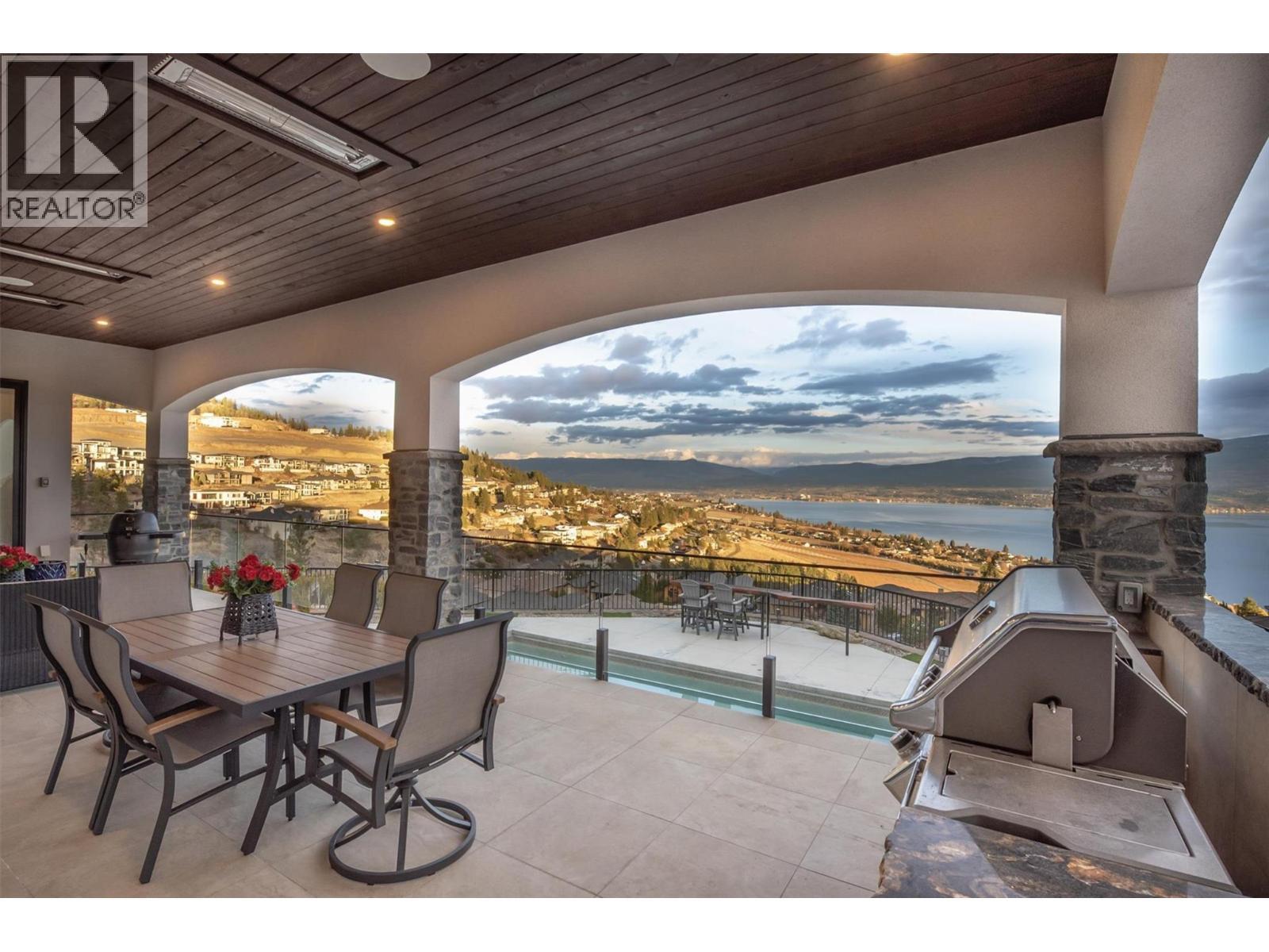 Rare offering at exclusive Vineyard View estates. Meticulously crafted mini estate with mesmerizing lake and city views. No expense was spared in achieving the highest standards of quality for both the interior & exterior. Magnificent arched wooden front door gives access to the main living area which offers exquisite imported natural limestone tiles that flow seamlessly throughout, complemented by matching solid slab stair treads. The main floor has a luxurious primary suite which is designed to take full advantage of the stunning views. The exquisite kitchen features stunning titanium granite & high end appliances with custom hood fan. Great room offers an open ceiling with elegant details and natural stone gas fireplace. Floor-to-ceiling windows and sliders in both the great room and dining area provide breathtaking 180-degree views of the lake & city. Main floor also offers an office, guest powder rm & laundry facilities. The upper level offers 2 guest bedrooms, a full bath & a spacious family rm with access to an upper sundeck, all offering spectacular views of the lake and city. Oversized covered sundeck with tile floors, ceiling heaters and a built-in BBQ. Oversized triple garage with epoxy flooring with access to the mudroom with built-ins and large pantry. 6' crawl space w/stair access. Gated property offering ultimate privacy & magnificent landscaping w/multiple outdoor seating areas. Cozy fire pit, pool w/auto cover, pool bath. Tile roof, Outside pkg for RV & boat (id:6769)